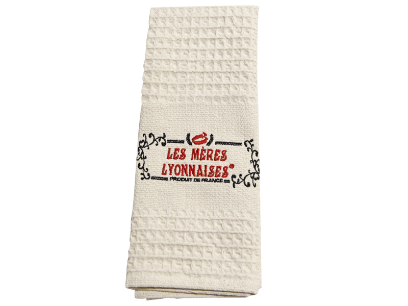 Ayez un souvenir de la capitale française de la gastronomie dans votre cuisine, grâce à ces jolis torchons brodés avec le logo officiel Les Mères Lyonnaises®