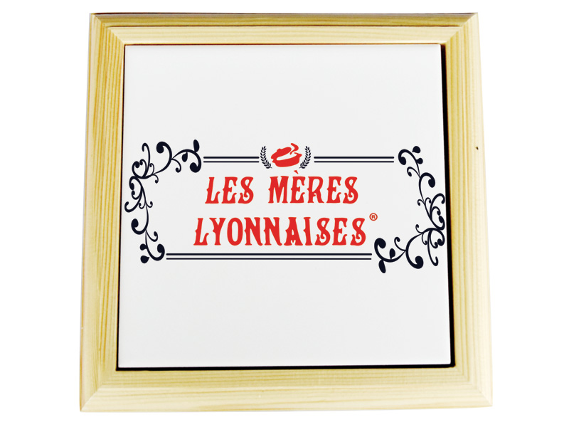 Carreau 15*15 blanc décoré avec le logo officiel "Les mères Lyonnaises"
